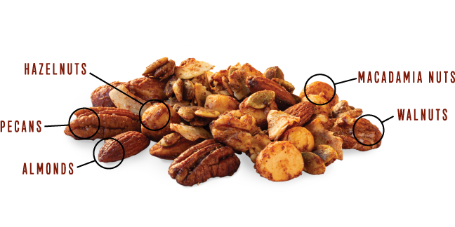 Instead, we start with a distinct five-nut formulation of almonds, macadamia nuts, hazelnuts, walnuts, and pecans. Then we add in organic roasted coconut flakes, nutrition-packed pumpkin seeds, and delicious spices.